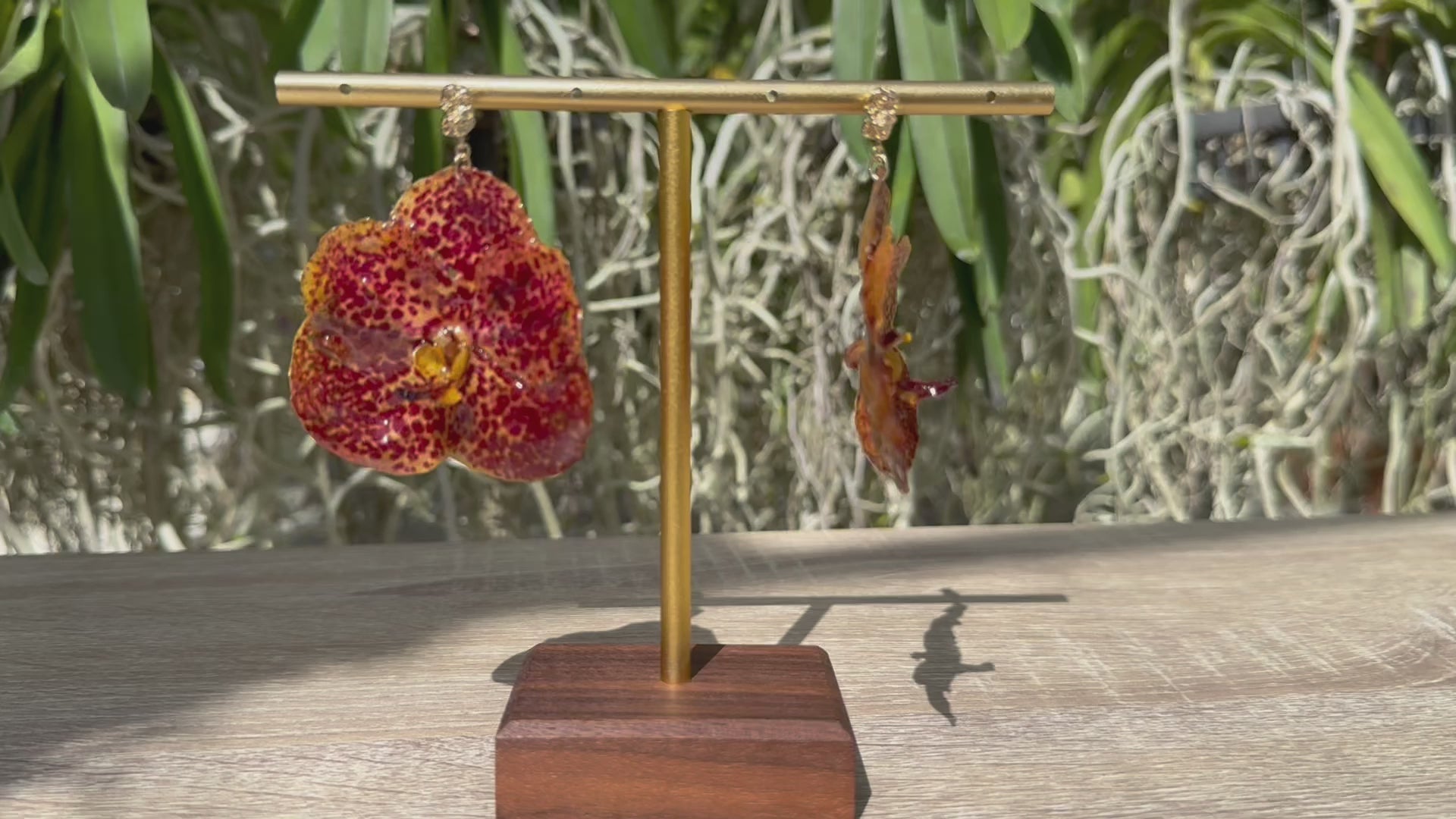 Care Instructions: To keep your real orchid jewelry looking its best, store it in a cool, dry place and avoid direct exposure to water or perfumes. The gold will naturally develop a warm patina over time, enhancing the piece's beauty.