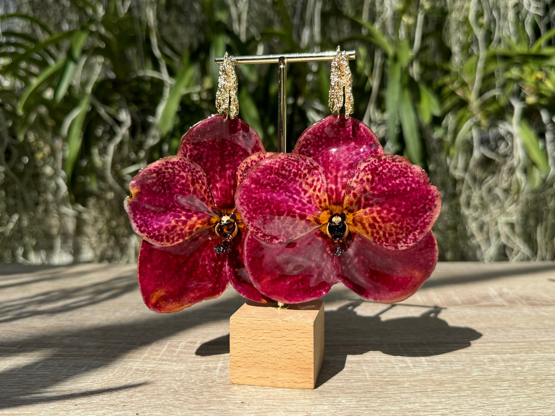 Real Orchid Resin Earrings - Nature's Beauty Encased in art