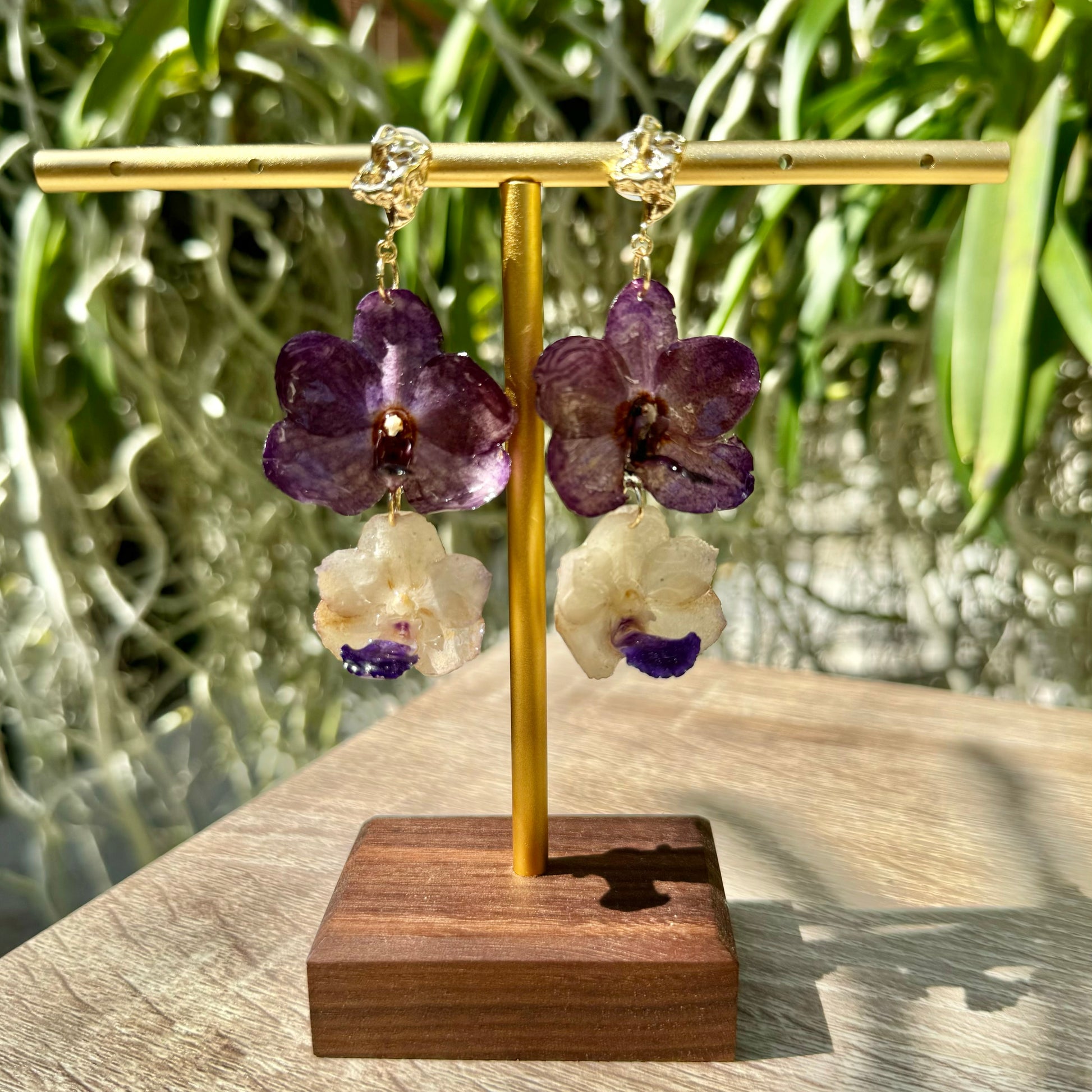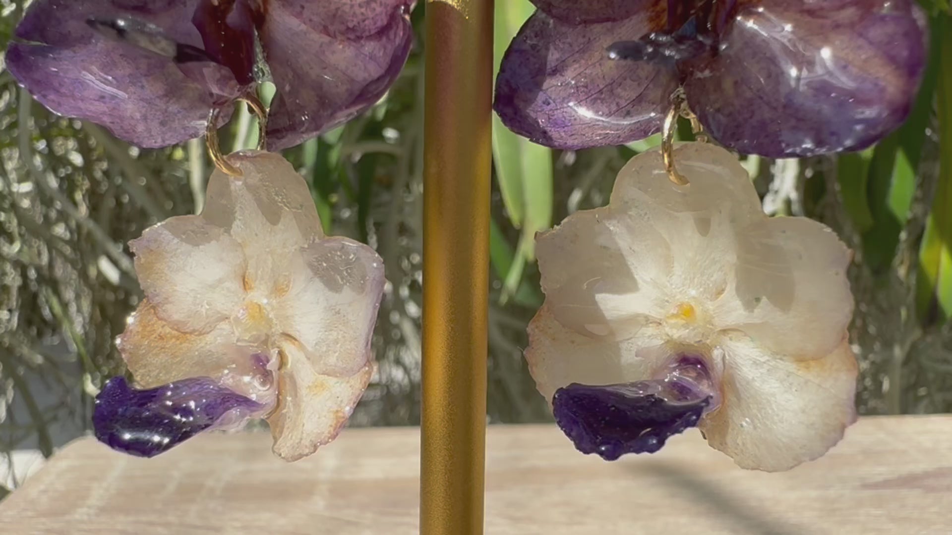 Real Orchid Resin Earrings - Nature's Beauty Encased in art