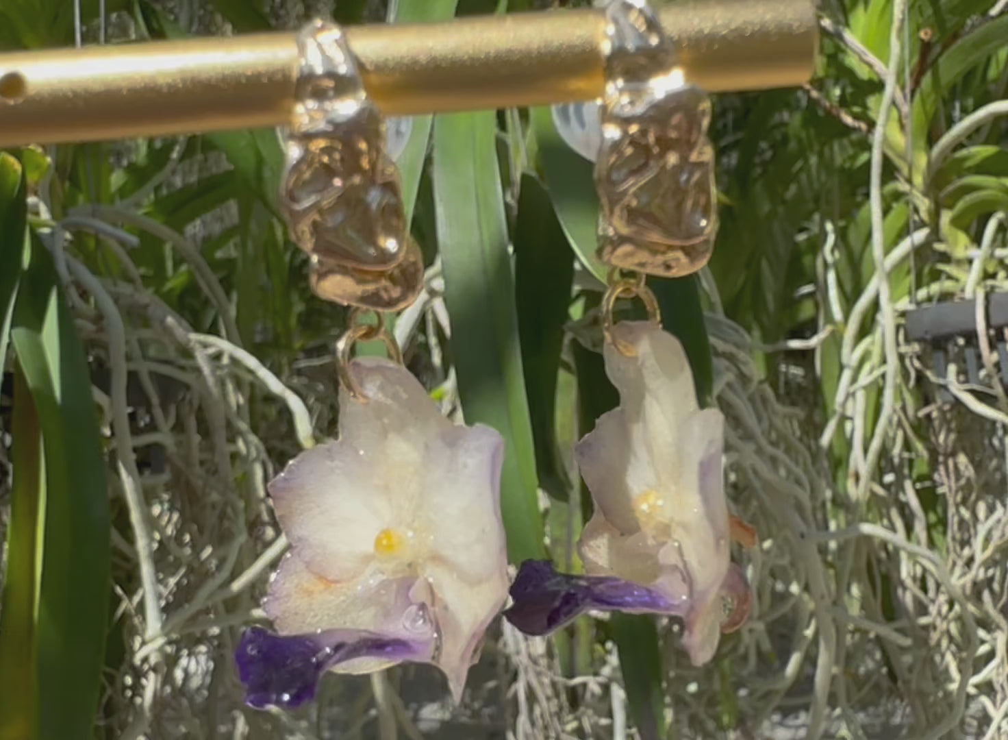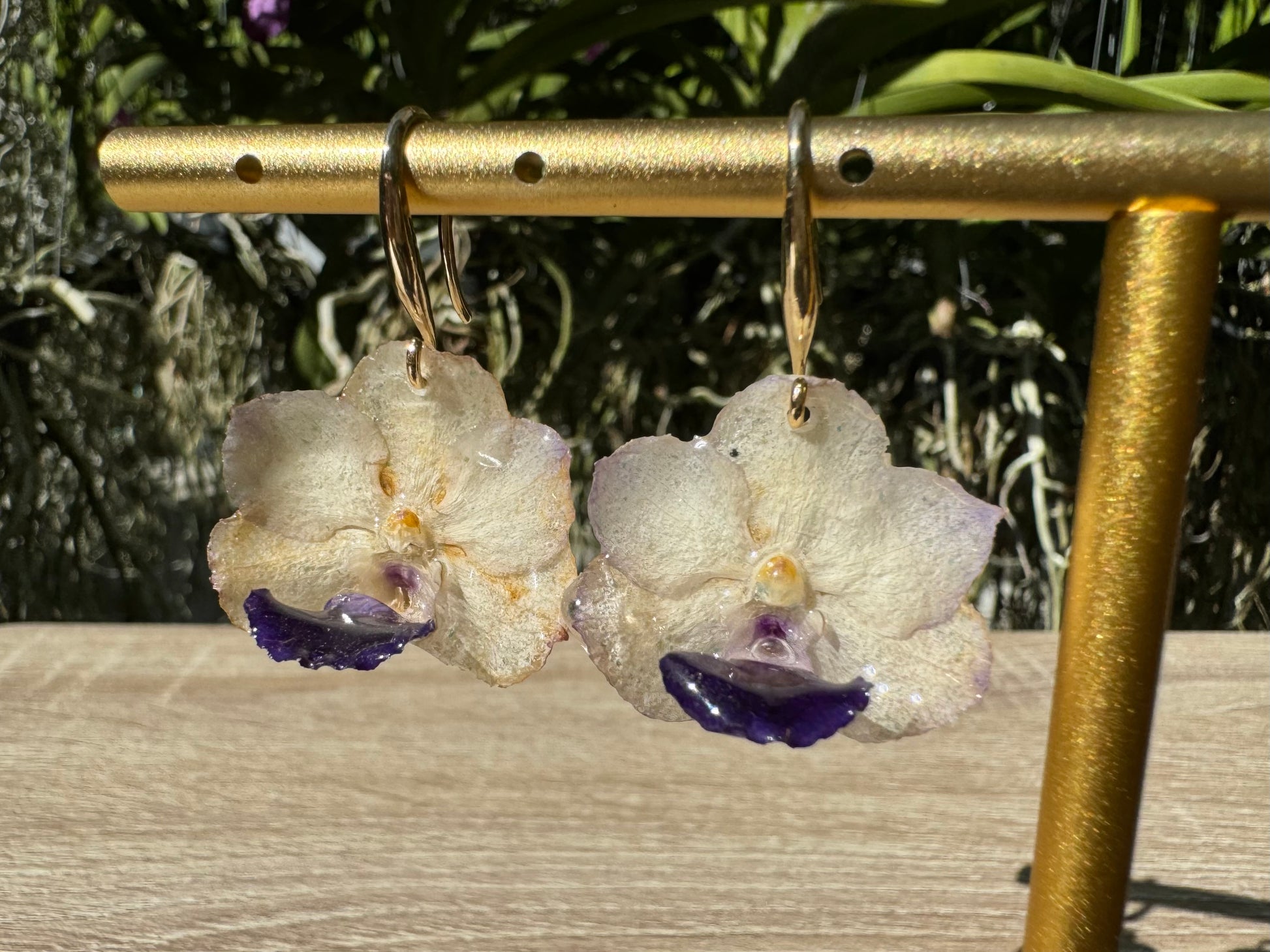 Real Orchid Resin Earrings - Nature's Beauty Encased in art